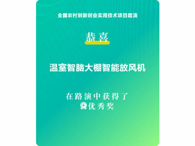 公司擁有注冊商標12個,實用新型專利18項,外觀專利4項,并獲得了ISO9001質量管理體系認證證書,2021-2023年科技型中小企業(yè)稱號。溫室智腦大棚放風機,獲得2020年度農業(yè)農村部舉辦的創(chuàng)新比賽優(yōu)秀獎。